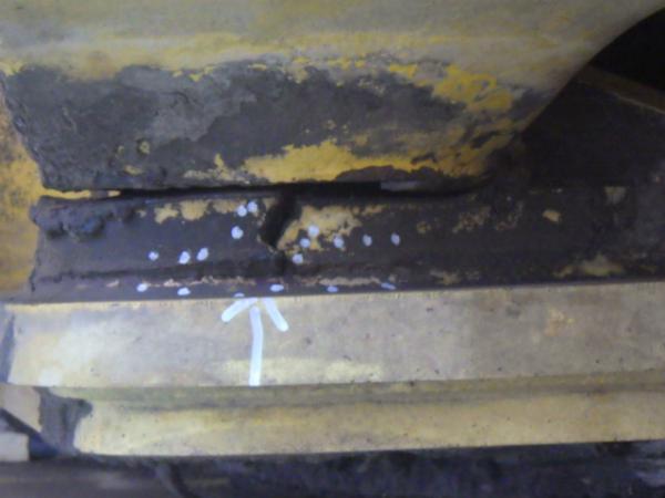 * crack on the boom base frame