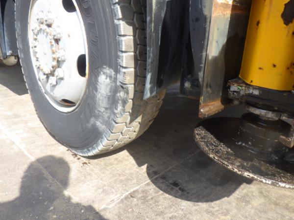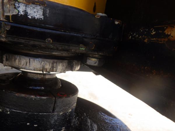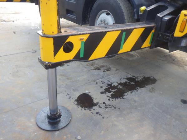 # 4 of outriggers have oil leakage and the left/rear hyd. cylinder has damage